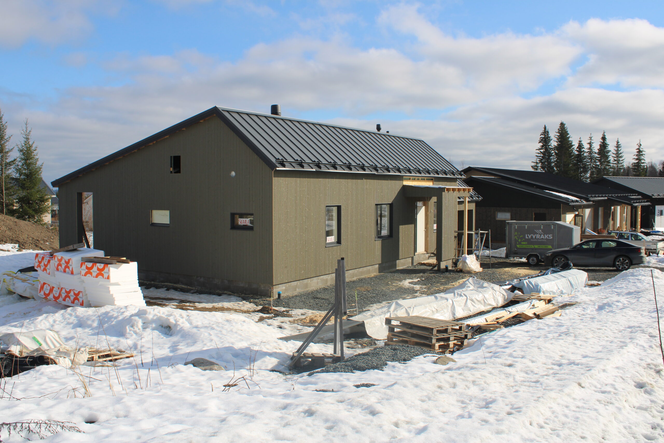 Uudelle asuinalueelle Siilinjärven Haapamäkeen on rakenteilla nykyaikainen, toimivalla pohjaratkaisulla ja maalämmöllä varustettu omakotitalo autokatoksella. Valmistuminen on kesäkuussa 2026.